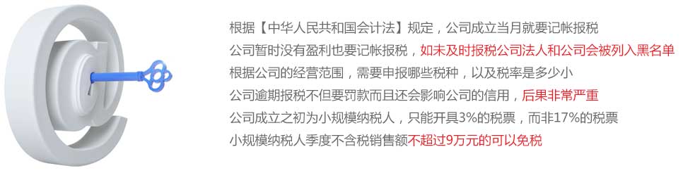 • 根據(jù)【中華人民共和國會計法】規(guī)定,公司成立當(dāng)月就要記帳報稅